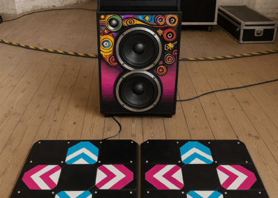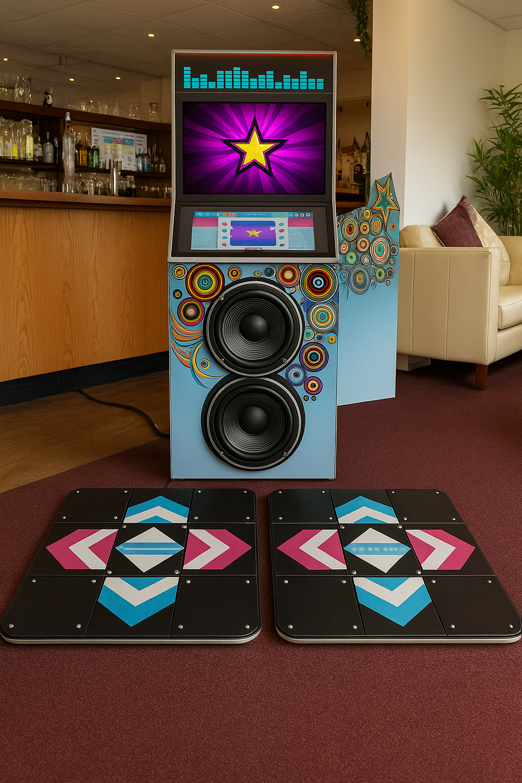 Looking to liven up the next corporate function, birthday bash, anniversary party or employee outing? Try out our arcade dance stations we have which bring the action and fun of old time arcades into your event space. We have options available throughout the UK from large cities like Birmingham and Leeds to smaller towns, that’s what we do. Our twin models present a perfect friendly platform for go head to head competition, or to perform the choreography you’ve been practicing.